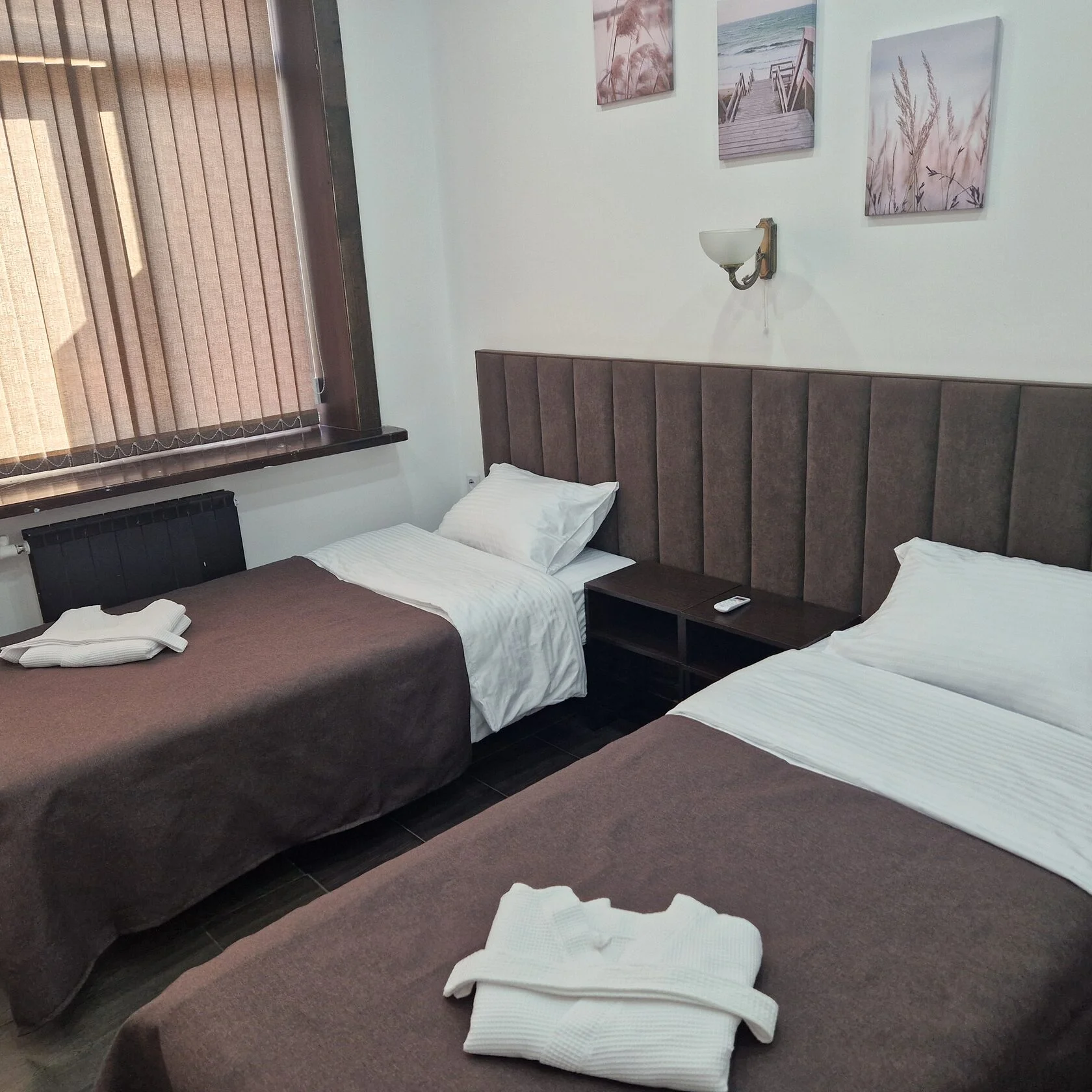 • При бронировании трёхместного номера, предоставляется размещение категории TWIN+ EXB (стандартный номер с двумя раздельными кроватями + дополнительное спальное место( возможно еврораскладушка))